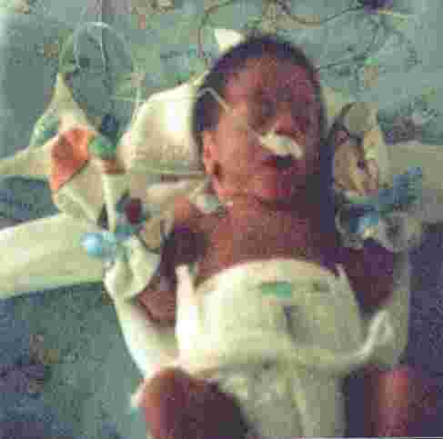 Le 28 Octobre, on m’a retiré l’appareil que j’avais sur le nez, et mon bonnet de clown. On les a remplacés par un petit tuyau qui vient dans une de mes narines, et un petit bonnet en coton pour me tenir chaud à la tête. J’ai un peu maigri, comme tous les bébés à la naissance, et pèse maintenant 980 grammes.